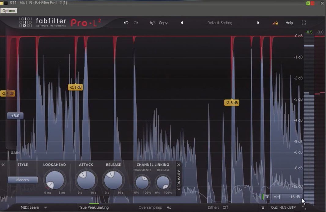 ゲインリダクションした箇所それぞれに数値でポップアップしていて視認性が高い。